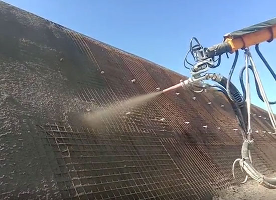 混凝土濕噴機械手是大型智能化混凝土濕噴設備,理論噴射排量每小時30立方。混凝土濕噴機械手采用全自動無線遙控操作,智能控制添加液壓速凝劑,能靈活方便的完成各種作業面的混凝土噴射作業。混凝土濕噴機械手廣泛應用于鐵路隧道、公路隧道、水利涵洞、礦山巷道、堤壩邊坡、建筑基坑和軍事工程等領域施工中的噴射混凝土支護作業。